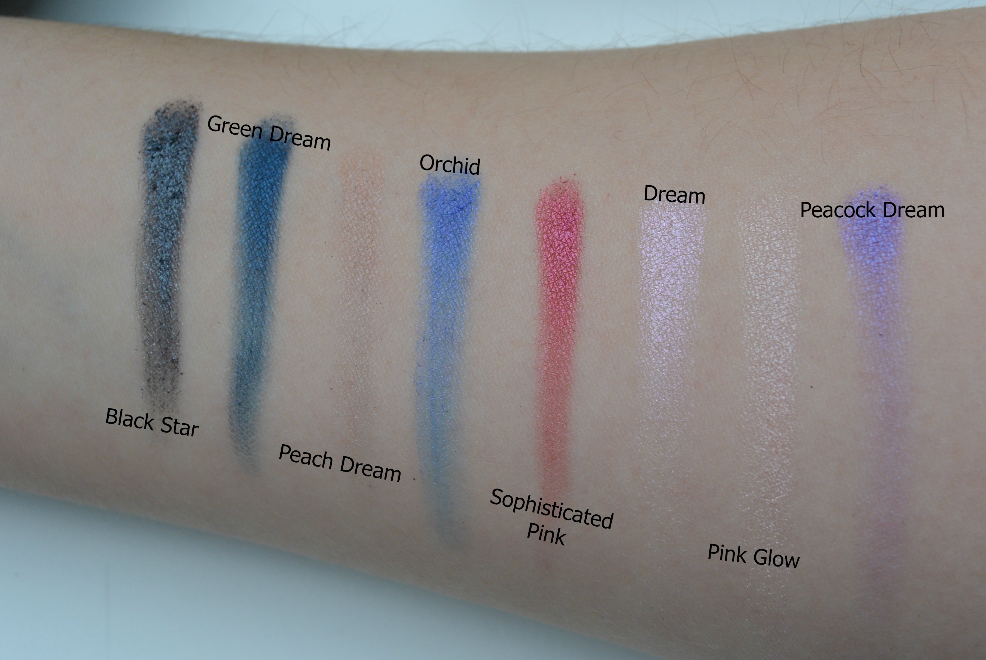 Ik heb van het gehele palette swatches gemaakt om te laten zien welke kleuren bij mij het meest gepigmenteerd zijn.