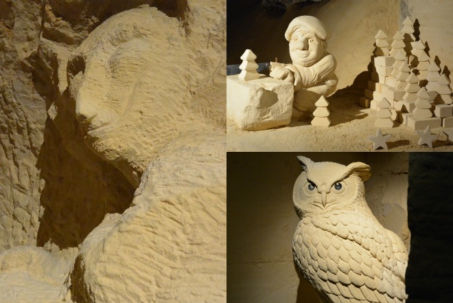 Hierna hebben we een kijkje genomen in de grotten van het Mergelrijk. Hier waren ook sculpturen met een kersttintje te vinden, maar dan van mergel.