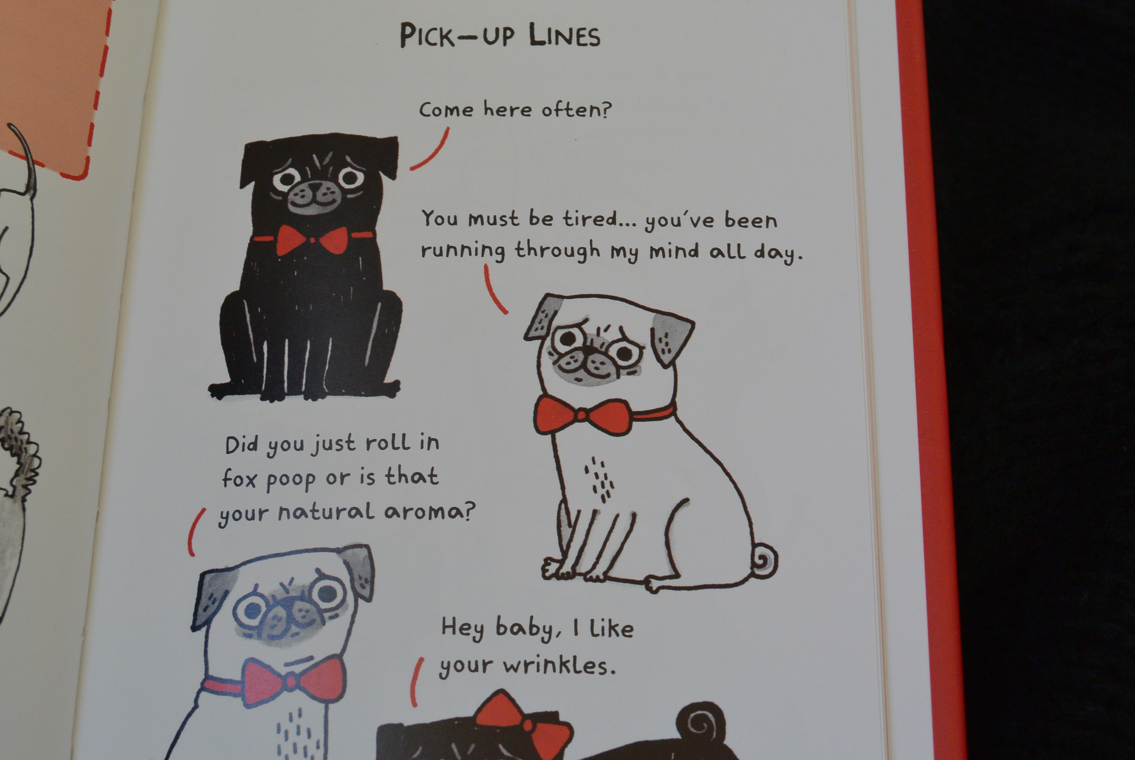Het boek is in het Engels geschreven en bestaat uit zes hoofdstukken: de introductie, ijsbrekers, daten, romantiek, speciale gelegenheden, relaties en als laatste… de breakup. Pugs leren gemakkelijk hoe ze het beste flirten, welk geurtje het andere geslacht lekker vindt en hoe ze zich “moeten” gedragen tijdens een date.