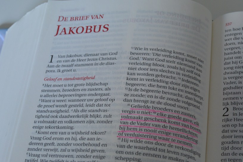 Elke goede gave, elk volmaakt geschenk komt van boven, van de Vader van de hemellichten; bij hem is nooit enige verandering of verduistering waar te nemen. – Jakobus 1:17