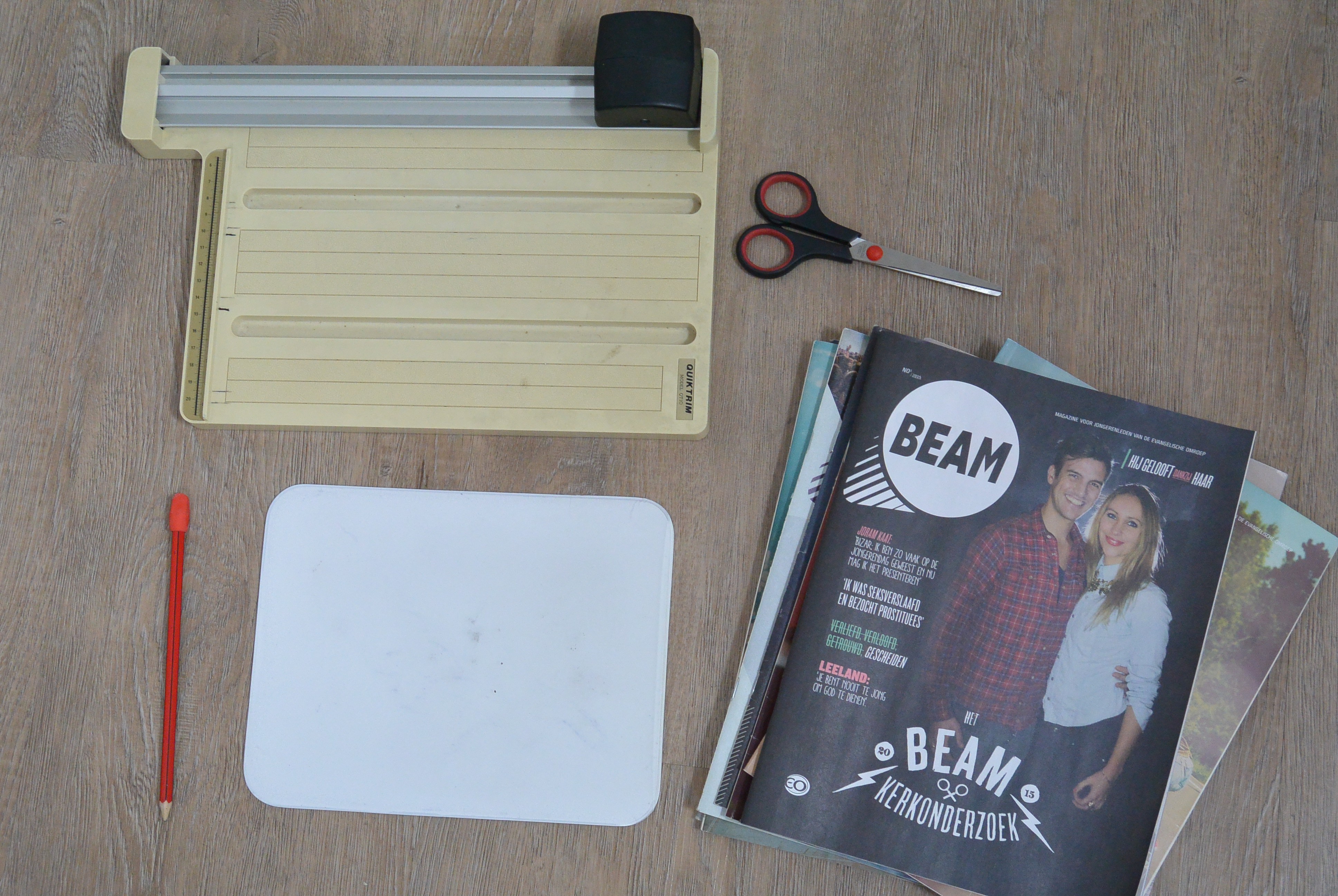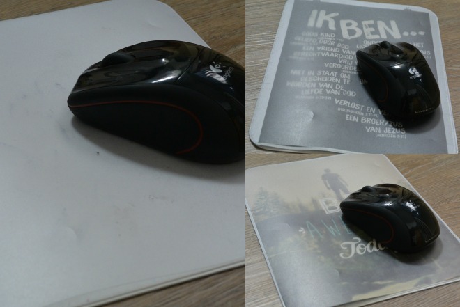 Zoek in tijdschriften naar keuze of op internet inspirerende teksten. Knip of print deze uit. Zorg dat ze groter zijn dan de muismat zelf.