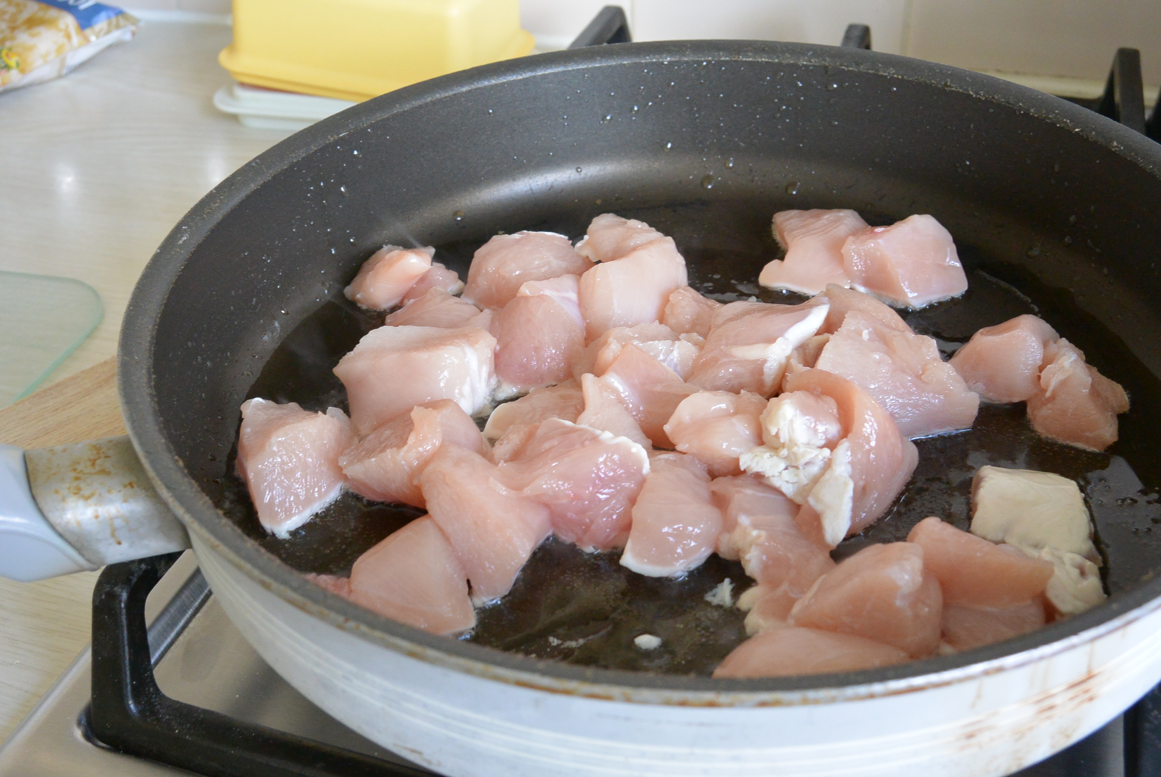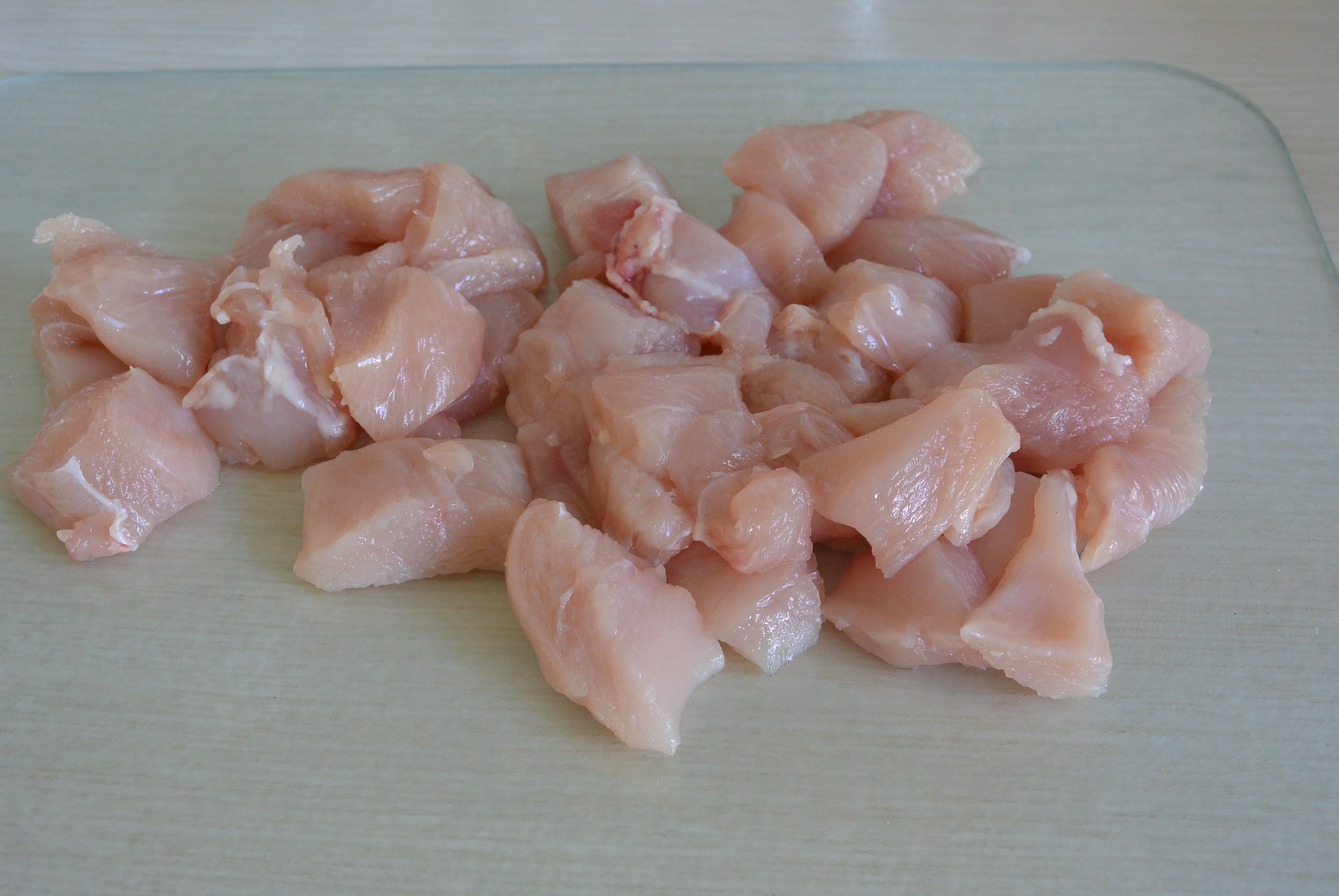 DSC_3169Snijd de kipfilet in kleine stukjes.