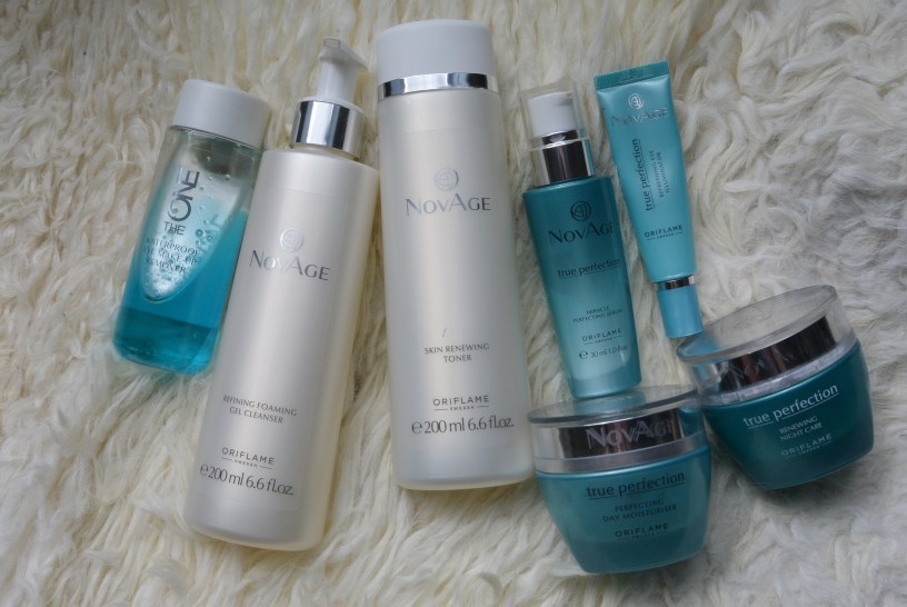 Mijn huidige skin care routine bestaat uit een reiniger op oliebasis, een schuim cleanser, toner, gezichtsmasker, serum, oogcréme en dag- of nachtcrème. Ik heb deze producten eerst een maand lang uitgetest voor ik er een oordeel over schrijf. Daarnaast zijn veel van deze producten (bijvoorbeeld uit de Novage en True Perfection serie) speciaal geschikt voor mijn leeftijd en huidtype. Kijk voor het aanschaffen van skin care producten wat het beste bij jouw huidtype past.