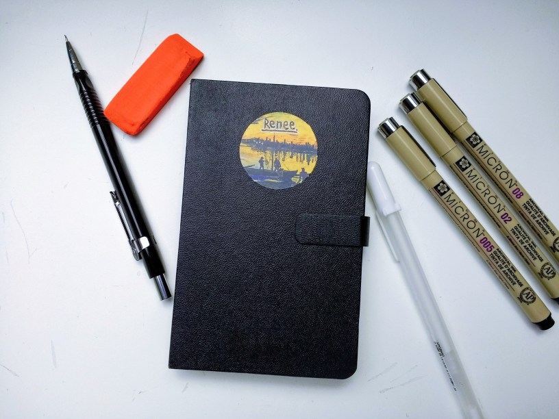 Om het mezelf niet meteen moeilijk te maken en te voorkomen dat ik het halverwege de vakantie opgeef, besloot ik om tijdens mijn schetsen een minimalistische stijl aan te houden. Dit hield in dat het grootste gedeelte van mijn tekening uit fineliner (mijn favoriete tekengerei) bestaat, met hooguit drie andere kleuren erbij om de tekening wat diepte en contrast te geven. Ook ben ik niet te streng geweest met het letten op perspectief. Ook dat is iets wat ik lastig vind en dus moet oefenen. Maar: laten we één ding tegelijk tackelen.