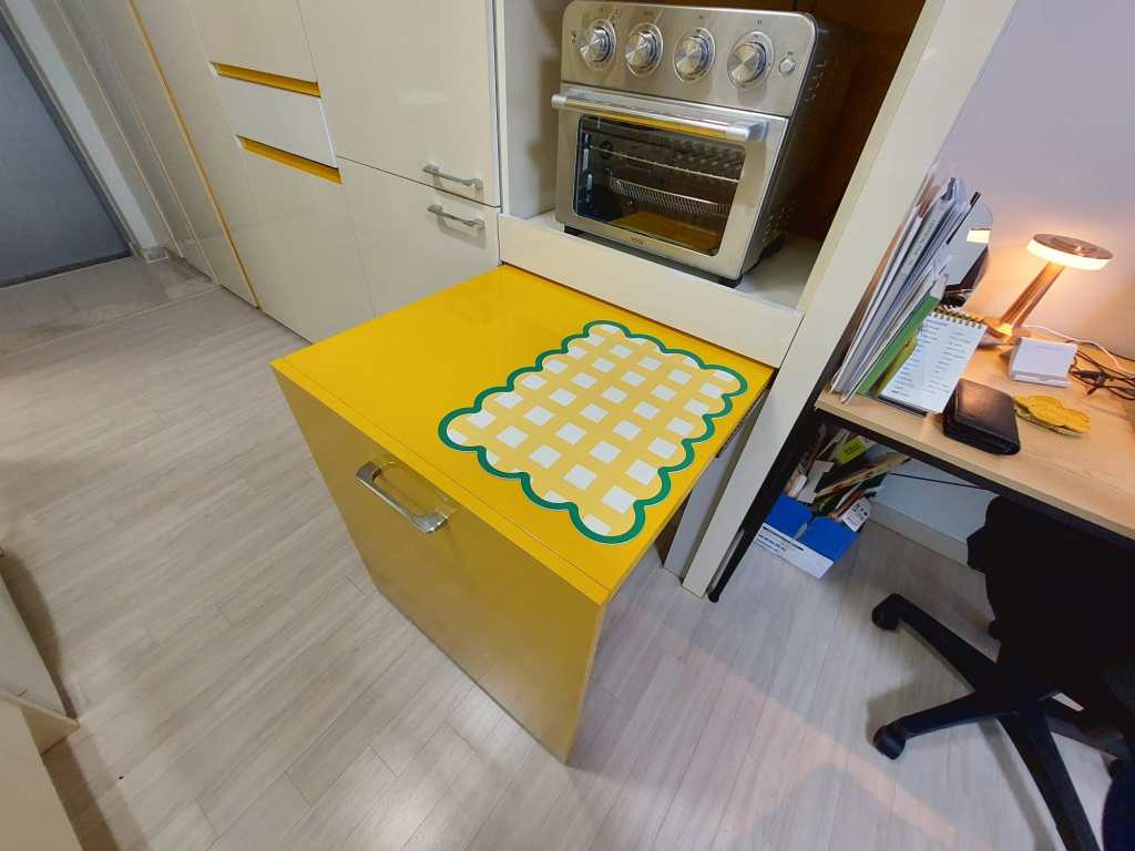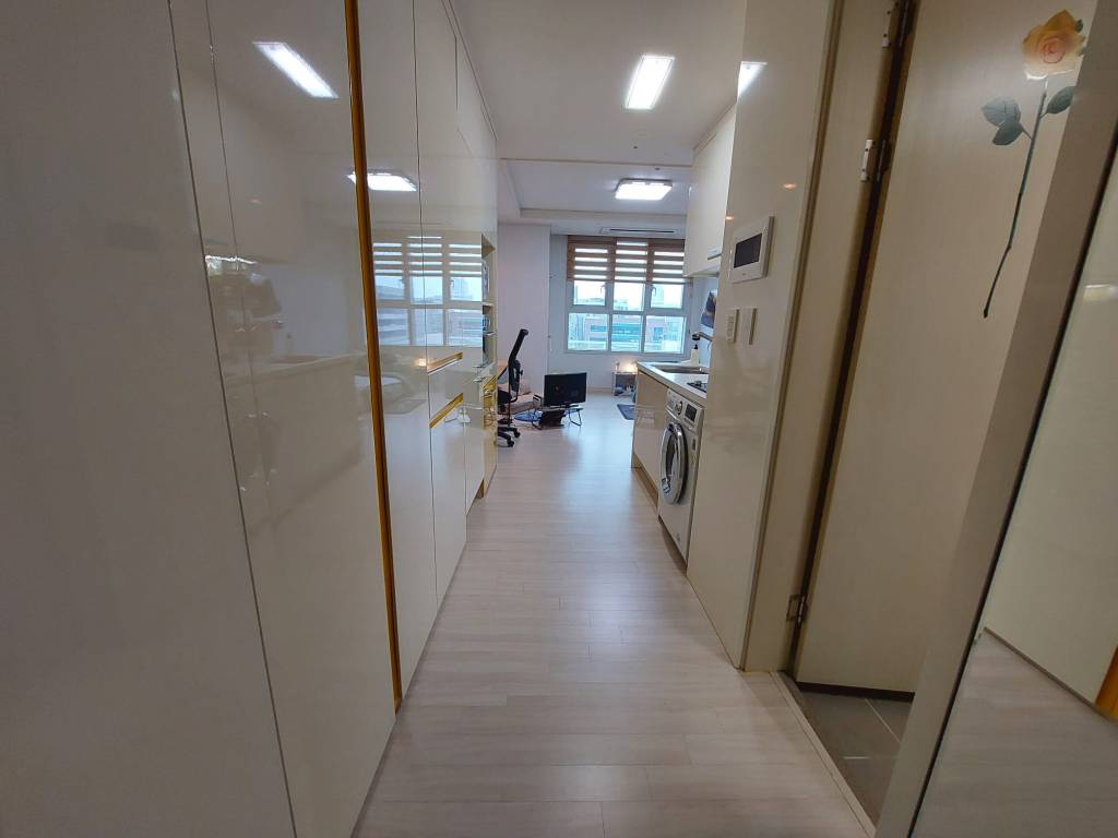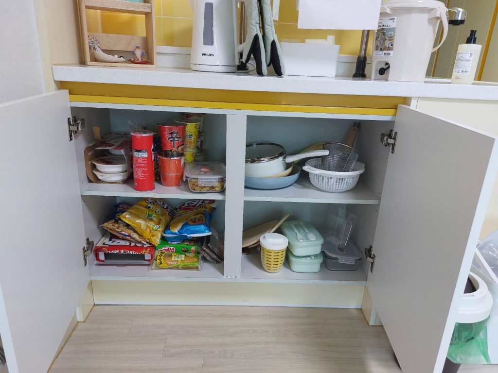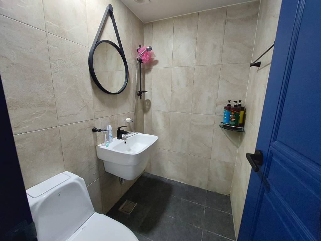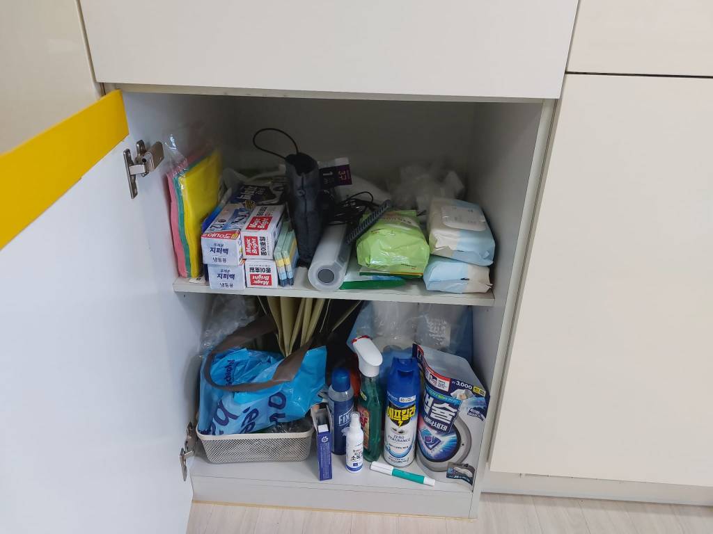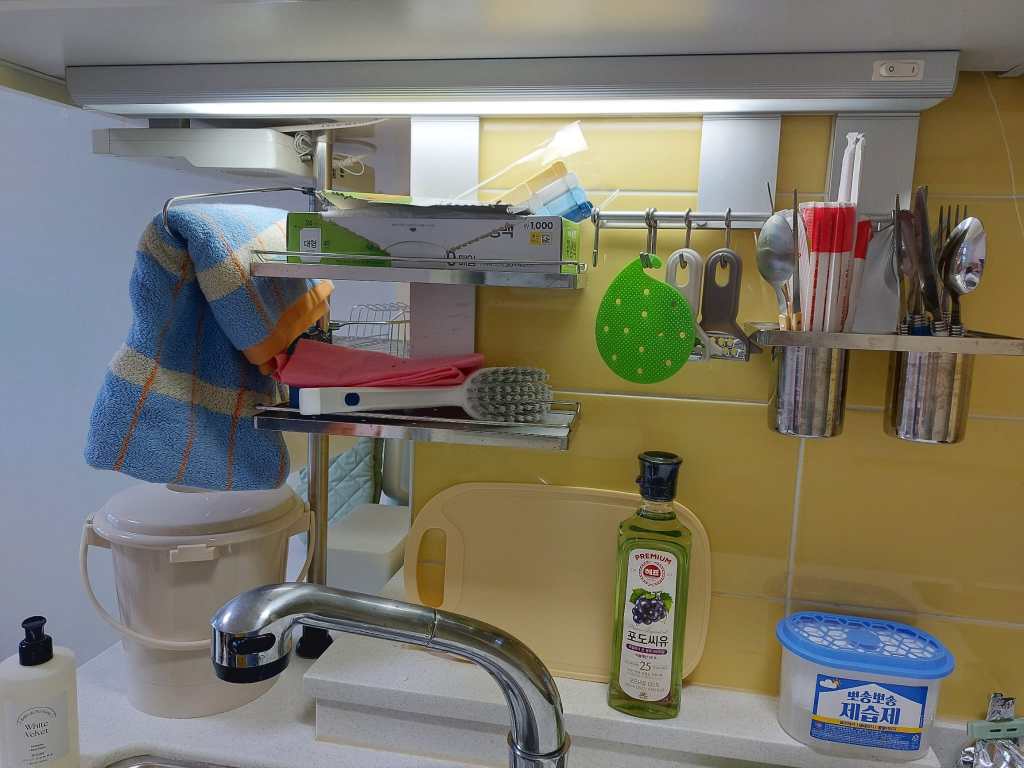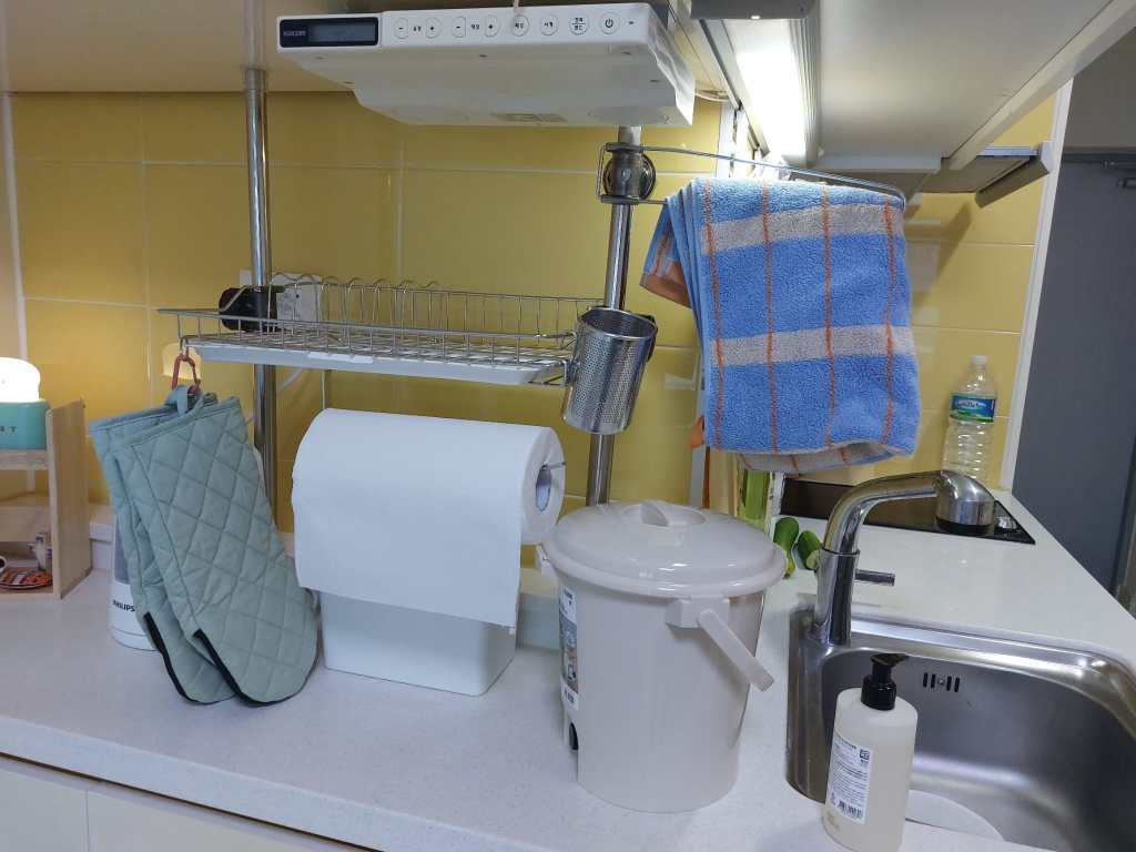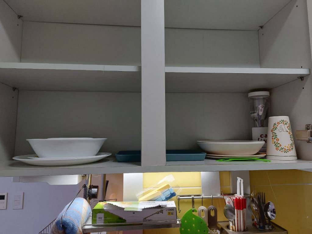 Mijn badkamer heeft twee ruime spiegelkasten met schuifdeuren, waar ik alles achter kwijt kan. Daarnaast ben ik super blij dat ik een afgesloten douchecabine heb. Dit komt namelijk lang niet altijd voor in Korea. Veelal zie je dat ze de douchkop boven de wastafel hebben hangen en wordt alles nat wanneer je probeert te douchen. Mijn toilet heeft een bidet (en ik wil nu niet meer zonder) en de badkamer zelf heeft ingebouwde afzuiging. De toiletrolhouder heeft zelfs een uitschuifbaar plankje waar je je telefoon op kunt leggen.