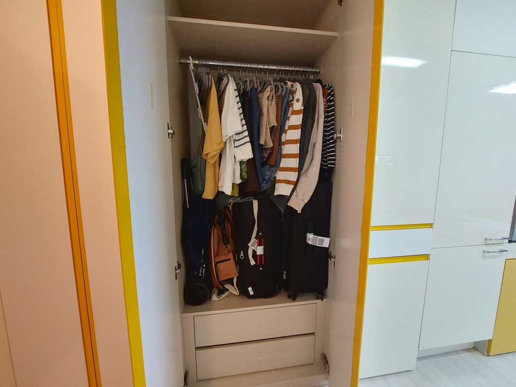 Het appartement dat mijn werkgever, Chloe, heeft gevonden, is perfect! Het is ruim, licht en super praktisch ingericht. Ik heb heel veel opbergruimte en er is overal over nagedacht. Zo heb ik een ingebouwd droogrek in mijn kledingkasten die ik uit kan klappen wanneer ik hem nodig heb. Ook heb ik een uitschuiftafeltje in mijn keuken, die ik kan gebruiken als eettafel. In één van de keukenkastjes zit een ingebouwd messenblok (hier kwam ik alleen pas achter toen ik al een ander messenblok heb gekocht) en mijn keuken heeft naast de vele kasten, ook een apothekerskastje, waar ik al mijn specerijen in kan bewaren. Ook heb ik een ingebouwde koelkast en vriezer. Iets wat je volgens mij niet vaak tegenkomt hier.