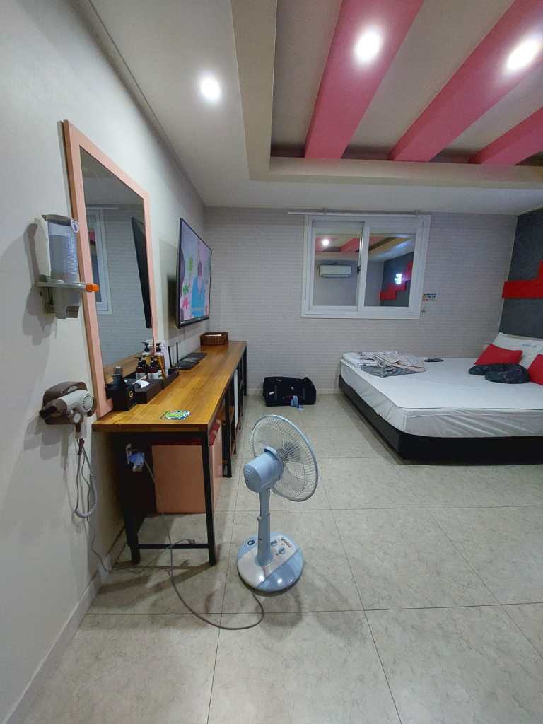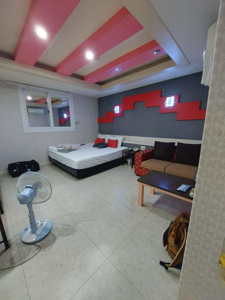 Toch was de kamer heel ruim, had ik een heel breed tweepersoonsbed, een airco, een grote tv (met Netflix en Youtube), een klein tafeltje en een bank, een waterkoker, een kaptafel (compleet met haarspullen en föhn) en een badkamer met zoals bad als douche. Met één afstandsbediening kon je zowel de tv, de airco als de verlichting bedienen. Ook had je een klein koelkastje in je kamer die iedere dag weer opnieuw werd gevuld met flesjes water. Bij het inchecken kreeg ik nog een etuitje met tandenborstels en andere cosmetica. Het was dus luxer dan ik had ingeschat, en dat voor zo’n kleine prijs. Het hotel was alleen niet brandschoon en had geen lobby met een ontbijt, maar dat nam ik voor lief. Een ander nadeel was dat het hotel niet heel veel in de buurt had. Je moest dus veel met de bus om een restaurant, cafe of convenience store te bezoeken. Ook de bezienswaardigheden waren best ver bij het hotel vandaan. Maar, dit was uiteindelijk niet een super groot probleem.