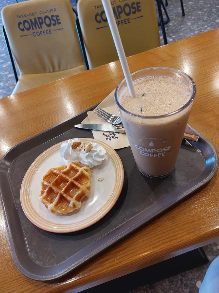Omdat het niet mogelijk was om te ontbijten bij het hotel, had ik besloten om wat te eten bij Compose Coffee, een populaire koffieketen in Korea. Helaas bleek dit toch niet zo’n goed idee.