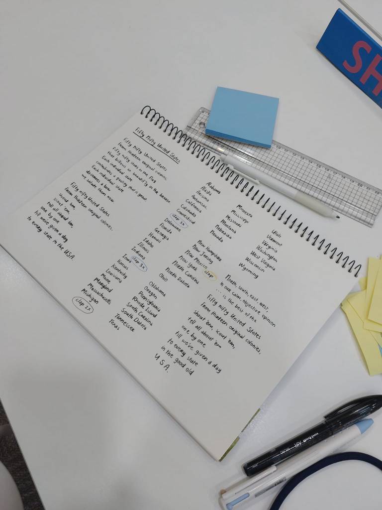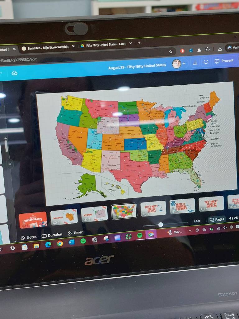 Sinds vorige week ben ik ook samen met de kinderen een liedje aan het leren. We zijn Fifty Nifty United States aan het oefenen, waarbij we langs alle staten van Amerika gaan. Het is echt leuk om te doen en ze pikken het echt goed op!