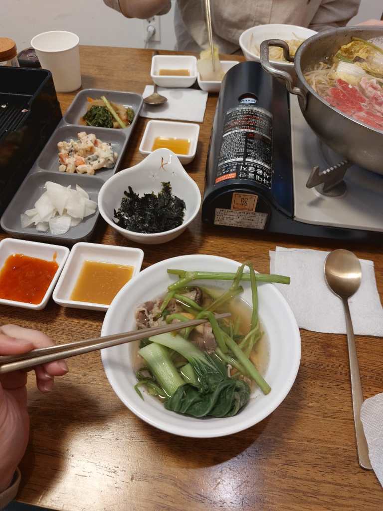 Waar ik vorig jaar alleen via take out een beetje typisch Koreaans eten kon proeven, heb ik nu al een aantal keer in een restaurant gegeten. Dit heeft ook te maken met het feit dat ik nu Chloe, mijn werkgever heb, waarmee ik uit eten kan. Zij heeft me tot nu toe al verschillende gerechten aangeraden en laten proeven. Hierdoor heb ik meer het gevoel dat ik me meer laat onderdompelen in de cultuur. Eten is namelijk heel belangrijk in Korea.